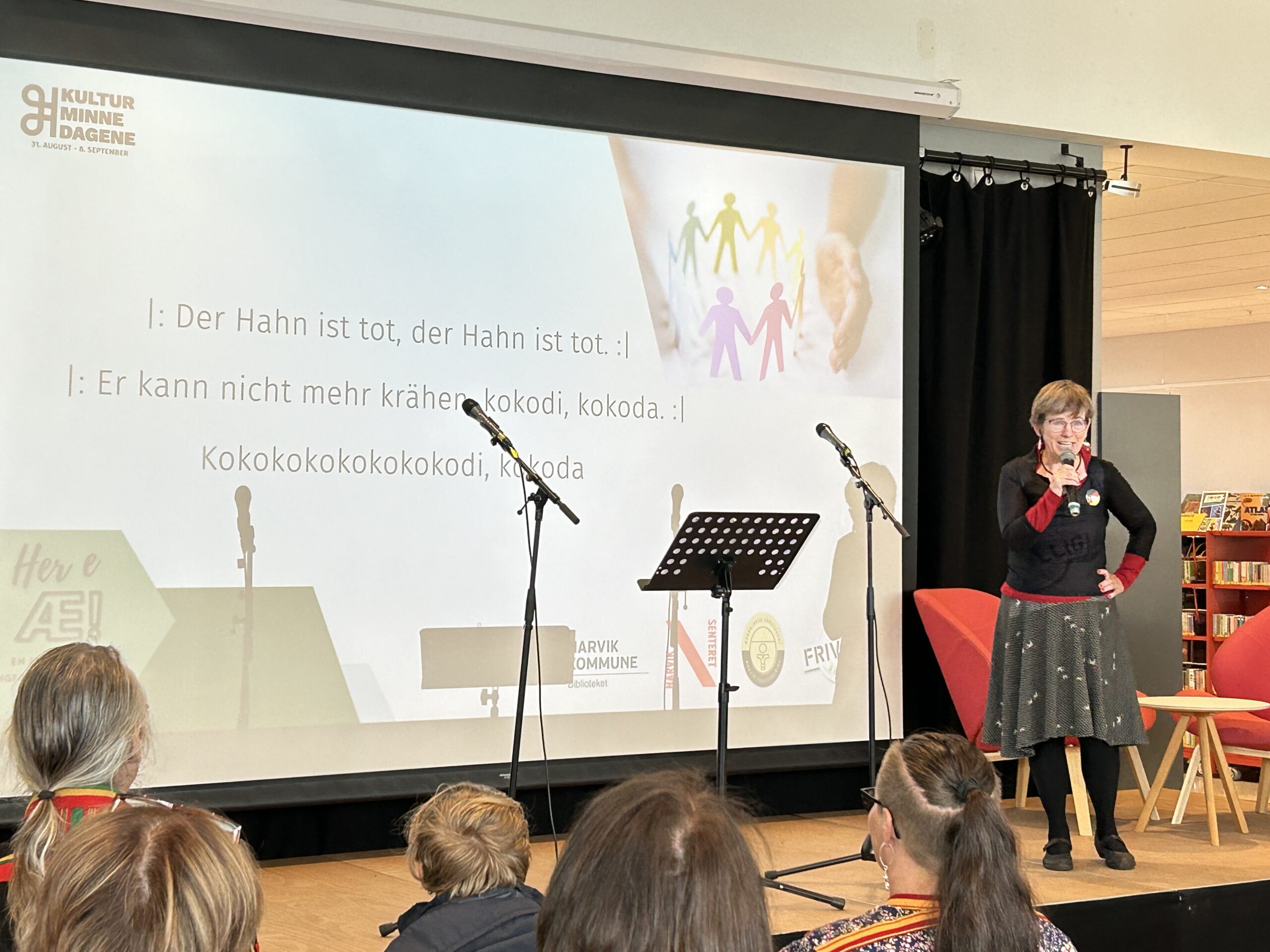 Julia stemmer opp til tysk allsang blant publikum